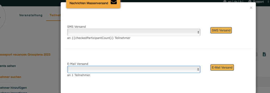 Dieser Artikel richtet sich an Administratoren die für die Organisation einer Veranstaltung wie einer Projektwoche, Wahlfächern, Ferienpässen oder modularem Unterricht verantwortlich sind. Sie erfahren, wie Sie mit Schülern per E-Mail oder SMS kommunizieren können.